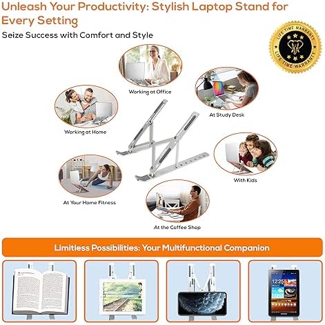 💻[PORTABLE AND LIGHTWEIGHT, WORK ANYWHERE] The best laptop stand for desk with lightweight at 0.62 lbs, foldable, and fits in a velvet bag. Your lsptop stand, on-the-go workstation, ready to boost productivity wherever inspiration hits. Elevate your workstyle – get yours now!
