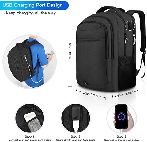 【USB Port & Anti-Theft】: With a built-in USB charging cable on the inside, backpack womens travel with usb port offers you a more convenient way to charge your phone while walking (Note: Power bank is Not included). The mens backpack with laptop compartment has a RFID pocket on the second compartment, which can protect your valuable items from being stolen