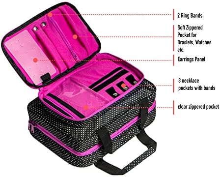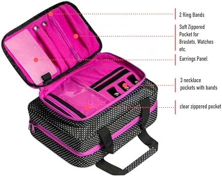 ✅ VERSATILE AND MULTIFUNCTION TRAVEL HANGING MAKEUP ORGANIZER: Large outside jewelry compartment can holds a lot of your jewelry, watches which you usually take on travel and you can reach them easily when the bag is closed. Three transparent interior compartments and a detachable zippered pouch for smaller items. The unfolded cosmetic travel bag can be hung from a variety of fixtures. (Please, do not overload it).