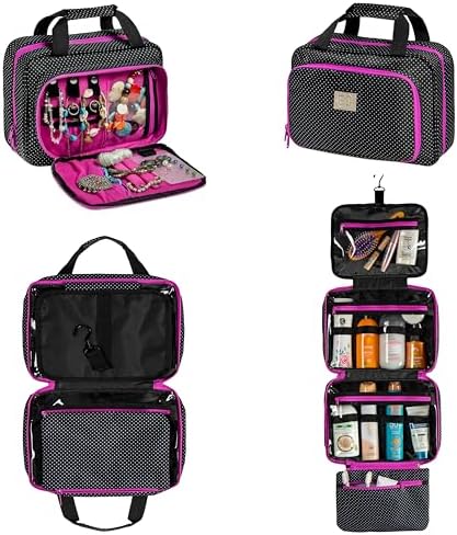 - Versatile Travel Cosmetic Bag – Hanging Toiletry Organizer (12”x 9”x4”) – perfect hanging toiletry bag for real size toiletries and many other thins;
