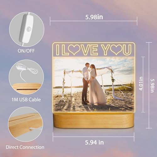💖【High Quality】The acrylic artwork picture frame is composed of acrylic and base, base is made of high-quality plastic with wood grain paint, the acrylic is environmentally friendly, no pungent smell, no sharp edges, and is durable. Each box come with a soft cloth for cleaning the frame. Night Light is equipped with a standard USB cable to apply to your power bank, laptop, computer or anything else with a USB plug in ability
