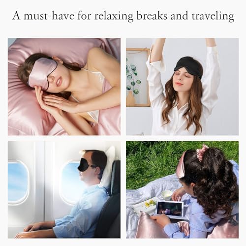 ANTI AGING&WRINKLES AROUND YOUR EYES: Silk is rich in 18 amino acids, which is hypoallergenic and anti-aging, ideal for skin care and health. The silk fabric helps to keep moisture close to the skin and stop it from drying out overnight. Wearing a silk eye mask will make you feel more relaxed and can take a quick nap or deep sleep anywhere anytime and wake up feeling rested and refreshed.