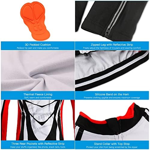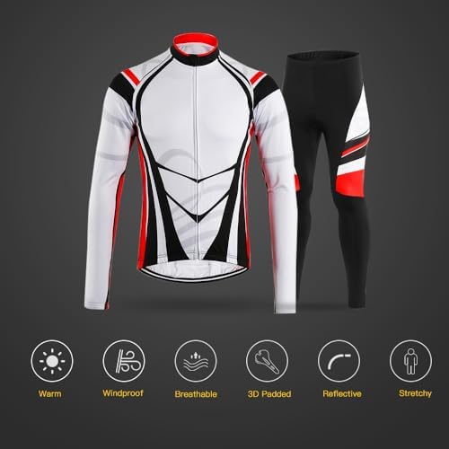 Manufactured from premium polyester fabric, this cycling clothing set is windproof and water repellent. The thermal fleece lining helps to absorb and retain your body heat, so you’ll feel comfortable and warm when cycling in winter. At the back you can find 3 pockets with a reflective strip that ensure a safe riding at night. The 3D padded cushion makes crotch feel very comfortable without being too tight, good for long-time riding. With eye-catching printing pattern, this cycling set will surely make you sporty and fashionable when riding across the urban road, mountain roads and wherever you are.