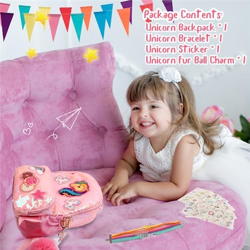 🦄【Unicorn Girls Backpacks for School Package Contents】This package contains unicorn mini backpack kids+Unicorn Keychain+Unicorn Bracelet+Unicorn Stickers.The LSSAGOON sparkly personalised toddler backpack adjustable (gift package) is not only very practical, but also very beautiful,It is the perfect gift for girls.