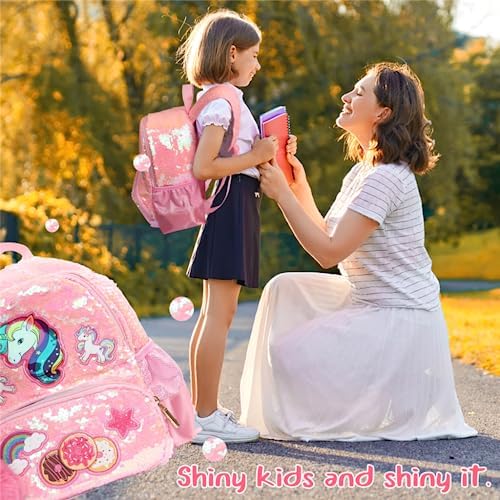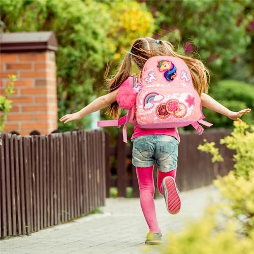 🌈【Beautiful Design Make Girls Can’t Take Their Eyes Off】LSSAGOON Leisure Bags are made of shiny sequined fabric. childrens backpacks for girls with rich unicorns, rainbows, donuts, stars decorative patterns. Personalised school bag for girls With cute unicorn pompon key ring. Aureate metallic zipper head reflects quality feeling. Every detail is full of girlish heart.