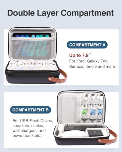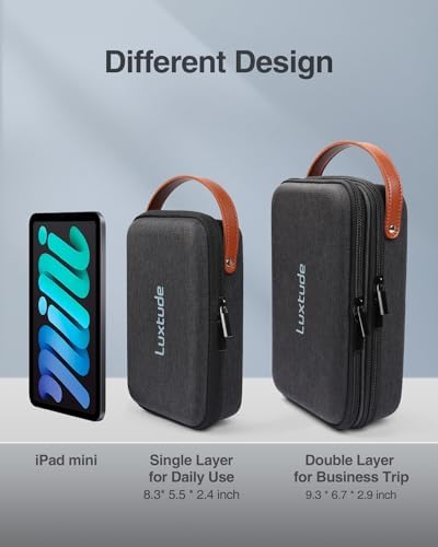 【Two Compartments for Apple Accessories】There is a dedicated mesh pouch for your iPad Mini, large power bank, ect. There is a compartment for Apple Pen, cables&cords, flash drives, hard dirves, ect. There is a botton space for apple charger/magic mouse/earphone, etc