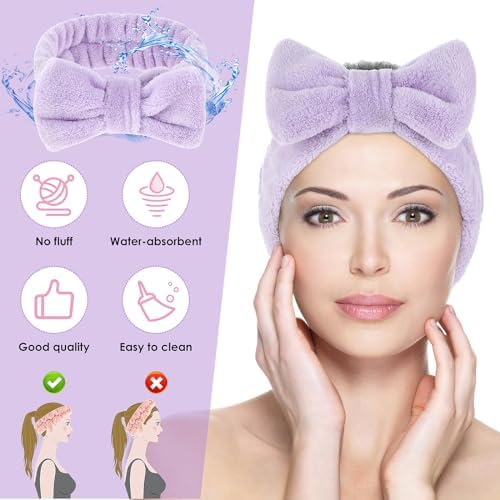 【Lovely Bowknot Design】The cute bowknot is decorated on the top of the makeup headband, keeping your hair neat and tidy and making you look extremely sweet and lovely at the same time,which is a necessary accessory for you when washing your face or having a shower.