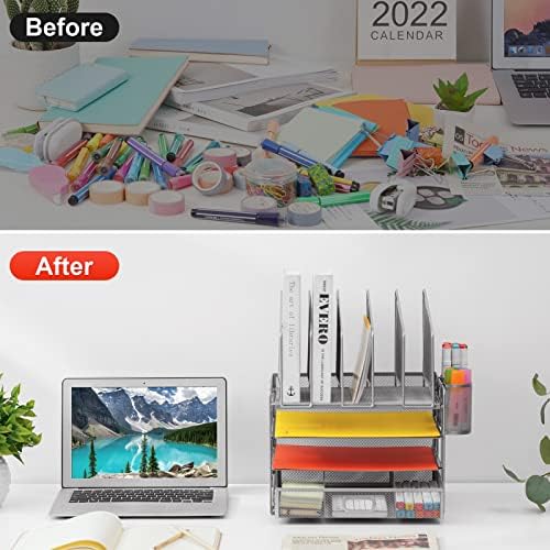 📂【Space Saving】Outfit your space with the Hanging Pencil Holder (Built-in Hooks) and top vertical file folder holder, which offers everything you need and make the most of your vertical and horizontal space to keep your desk neat so you can stay on task and do great work