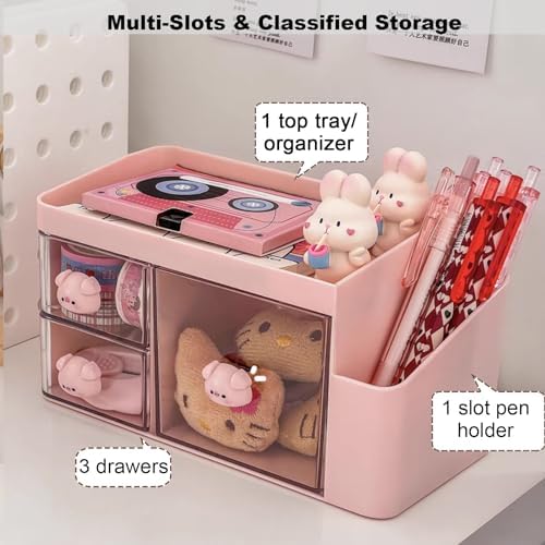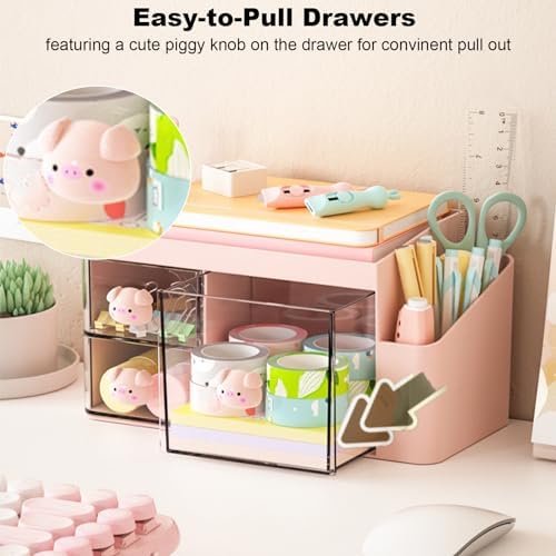Easy Access: This small desk organizer provides quick access to your items in each compartment. It features a cute bunny knob on the drawer for easy pull out. The drawers have a transparent design to easily locate what you need.