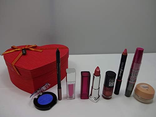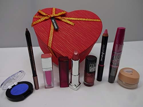 (105) Maybelline Gift Box Includes: 1 x Maybelline Colour Sensation Lipstick 165 Pink Hurricane, 1 x Maybelline Colour Elixir Lip Lacquer 110 Hibiscus Heaven, 1 x Maybelline Big Eyes Mascara Black, 1 x Maybelline Dream Creamy Goundation 004 Porcelain 7g, 1 x Maybelline Colour Drama Intense Velvet Lip Pencil Pink, 1 x Maybelline Colour Show Nail Colour 465 Brick Shimmer 7ml, 1 x Maybelline Master Drama Nudes Eye Pencil Pearly Taupe, 1 x Maybelline Colour Show Eye Shadow 10 Soho Blue, All Items Come In A Heart Shape Gift Box, Gift Set For Ladies
