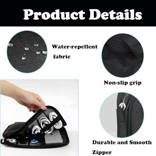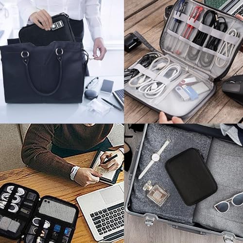 Electronics Travel Organizer, Travel Electronics Organiser, Portable Cable Organiser Case, Universal Carry Travel Gadget Bag Suitable for Charger, Cables, Earphone (Black) High Quality Materials: The electronic bag is made of high-quality materials, durable, and has a waterproof surface treatment to protect your items from water damage. The soft cushion inside the inner layer can protect your items from collision. Convenient to Carry: Its handle allows you to easily and comfortably carry this travel accessory bag at any time. The zipper allows the travel accessory bag to open smoothly, making it easy for you to put or take out small tools. Travel Accompaniment: Everything you need to be stowed away in the cable bag on the go, everything at your fingertips, quickly show everything at the security checkpoint at the airport or train station. Keep the bag tidy and orderly. Easy to Go out: The portable electronic bag can hold your device in place, making travel more convenient. The drawstring design allows for carrying and hanging, saving space and making it easy to use, allowing you to quickly access the items inside. Keep Everything in One Place: The electronics organizing bag helps you keep all your electronics accessories and various cables together. Like flash disk, Power, Cords, Memory Cards, USB drive, Charger, Pens, Headphone, Phone, and etc.