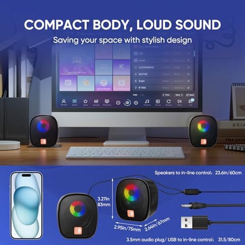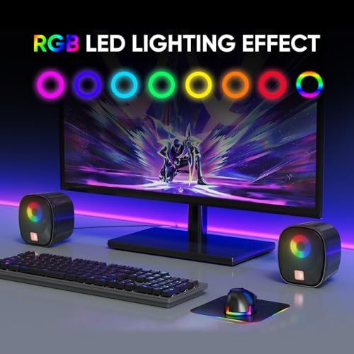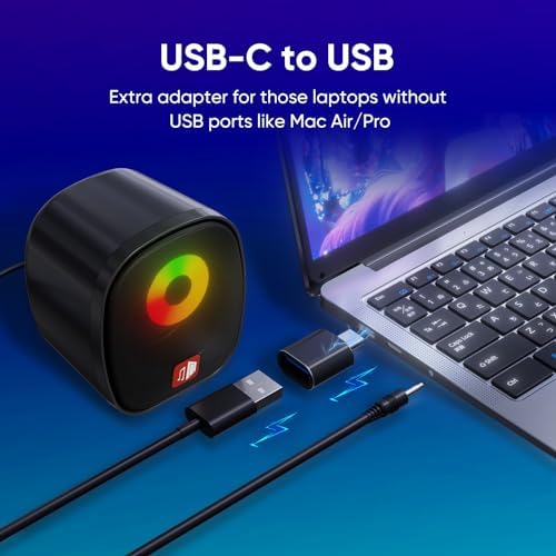 MELOGAGA Computer Speakers for Desktop, USB/USB-C Powered PC Speaker with Loud Stereo Sound, Multi-function Control, RGB LED Lights, Plug-n-Play for Desktop, iMac, MacBook, Laptop, Monitor
