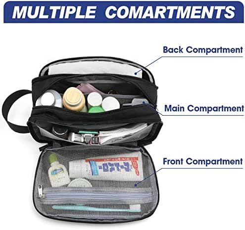 【ORGANIZED COMPARTMENT】The four compartment of the bag holds larger items like bottles of shampoo or shaving cream. much inner mesh bag that keeps your smaller toiletries and cosmetics in a visible and breathable place. Different compartments meet a variety of needs.