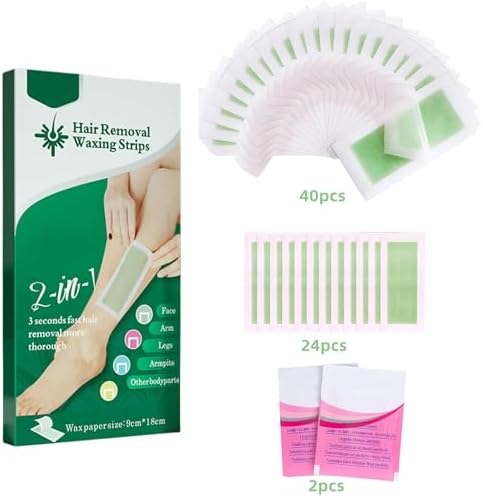 【Rich Wax Hair Removal Kit】Our kit includes 40 body wax strips, 24 facial wax strips for women, and 2 perfect waxing wipes. This wax kit for women ready-to-use hair removal wax strips kit saves you time and money, giving you a professional salon experience at a fraction of the cost. Ideal for lip wax strips for women, this natural ingredient kit is perfect for hair removal.