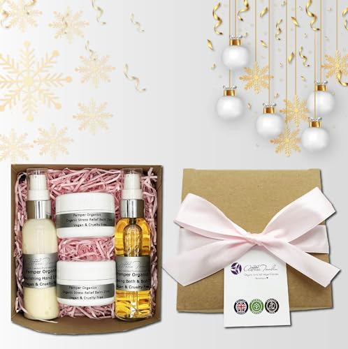 PAMPER GIFT BOX FOR MUMS AND NEW MUMS – Head to toe pamper gift box for mother’s day presents with vegan stress relief balms, relaxing body massage oil and a soothing and calming hand and foot cream