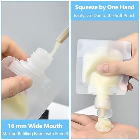 Travel Size Toiletries Bag, Refillable 30ml/50ml/100ml Squeeze Pouch for Toiletries