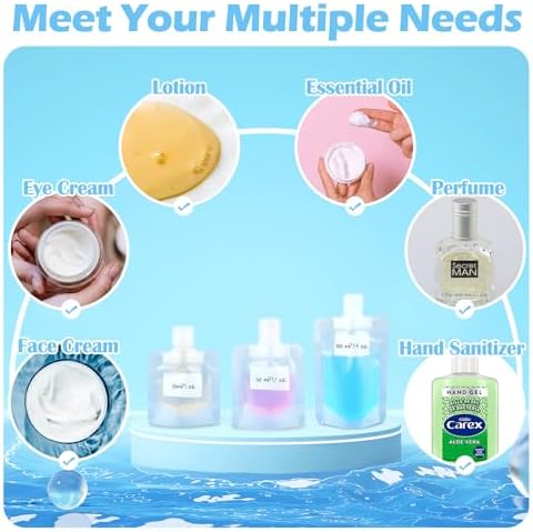 👉 【 Widely Applicable 】 Refillable squeeze pouch is suitable for travel, business trip or make-up use. Ideal for storing serums, lotions, oils, shampoos, body washes, sunscreens, moisturizers, etc.