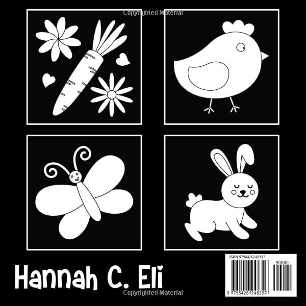 Content information/about this book:Cover-eye-catching elements make the child more likely to reach for the book.Glossy cover.Great gift for new moms.40 pages with black and white Easter-themed animals, baskets, flowers, and more.Printed on high-quality paper.Provides huge help in the development of a child’s eyesight.Perfect size for little hands 8,5 x 8,5Perfect gift for babies ages 0 to 12 months