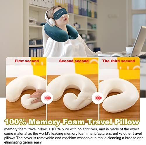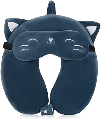 travel pillow, adjustable memory foam neck pillow support pillow with an eye mask, travel neck rest cushion u-shaped neck pillow travel accessories for plane car office (navy blue)