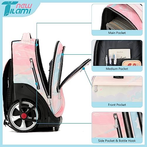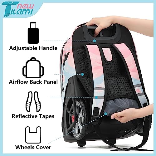 Introducing the NEW TILAMI 19″ Rolling backpack with wheels – the perfect rolling backpack for kids, teenagers, and even adults! This wheeled backpack is designed to function as a suitcase with wheels and can easily convert into a backpack for school or travel. It is ideal for kids carry on luggage with wheels, kids suitcases for boys and girls, and kids luggage with wheels for boys and girls. The backpack with wheels features a section for books, a laptop, and a lunch bag. The backpack also comes with a handle that can be extended for easy transportation. The product measures 19 inches, making it big enough for all your belongings. The backpack is available in the color black and is verified by customers as a helpful and reliable product. The wheeled backpack has been given a 5-star report by customers who are satisfied with its size and protection during travel. This rolling backpack for girls is related to various backpacks with wheels that are available on the Amazon website. Our backpack is a trending product under the kids’ luggage section. See the image for more details about the product. The returns plan is available for our customers within the United States of America. Order now and experience the convenience of our backpack with wheels for girls and boys.