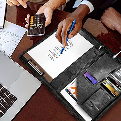 【Large Capacity】This portfolio organizer is well equipped with a A4 clipboard, 5 card slots with a ID window, a mobile phone pocket, a gadget pocket with fastener, a pen holder and a tablet sleeve. Perfectly functional for everyday use.
