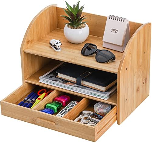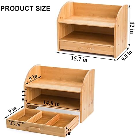 3 Tiers & Pull-out Drawers: Offers plenty of storage space to organize your debris. A compact desktop wood shelf organizer to save your space and relieve your fatigue.