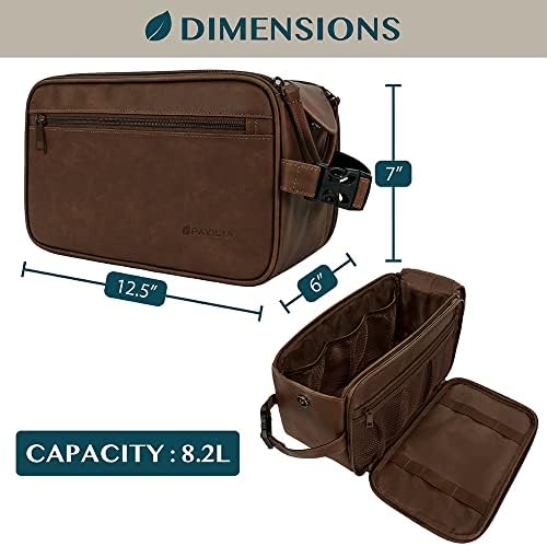 PAVILIA Toiletry Bag for Men, Leather Travel Shaving Leather Dopp Kit | Large Organizer with Clip-on Buckles and Double Zippers