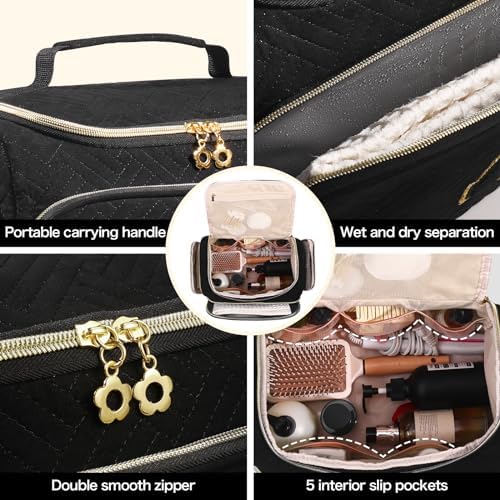 CONVENIENT DESIGN: The make up storage bag is equipped with a handle for carrying, a wide opening for quick access to items and two-way zippers.