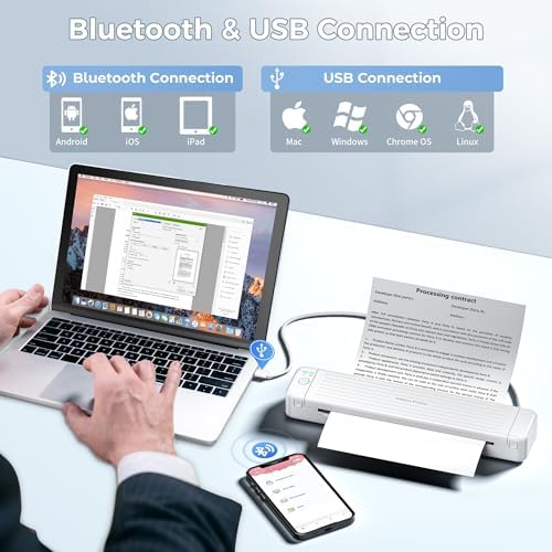 Mobile and Portable: The PhoFuta P831 portable printer a4 inkless thermal Transfer printer stands out with its compact design and light weight, measuring 309*65*42mm and weigh 700g,making it the perfect companion for business professionals and students who need to be mobile frequently. The easy storage in a briefcase or backpack makes the portable printer inkless thermal Transfer printer an essential tool for anyone who needs to handle printing tasks on the travel.