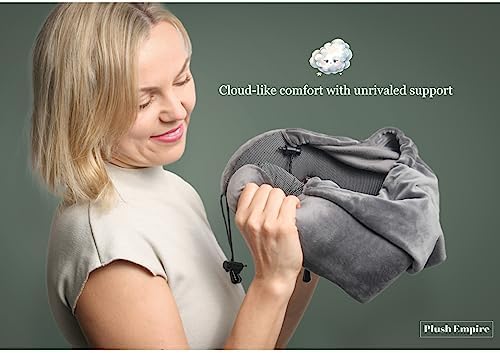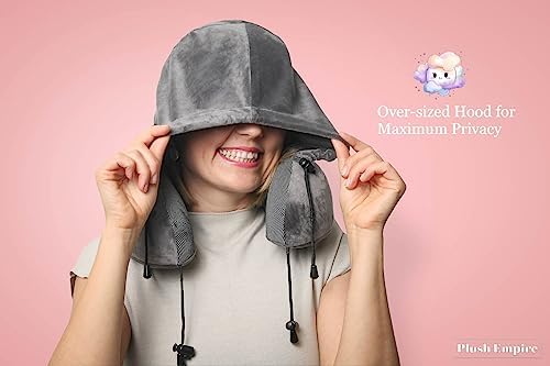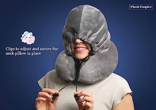Plush Velvet Material Over-sized Hood Ergonomic Memory Foam Tabs to adjust the tightness of the hood Tabs to secure the neck pillow in place