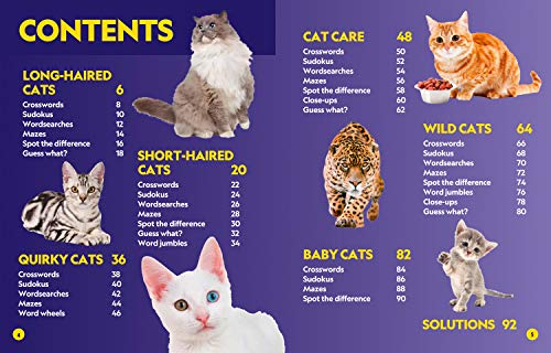 More than 100 brain-tickling wordsearches, sudokus, crosswords, quizzes, spot the difference and mazes.British Longhairs, Russian Blues, roarsome big cats, cute kittens and lots more feline friends.Colourful photographs and fascinating facts along the way.