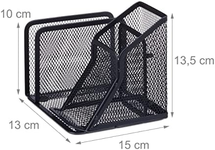 Total size: H x W x D: app. 13.5 x 15 x 13 cm Letter rack H x W x D: app. 10 x 0.1 x 13 cm Pen holder H x W x D: app. 13.5 x 8 x 13 cm Material: Metal Weight: approx. 260 g Available in various colours