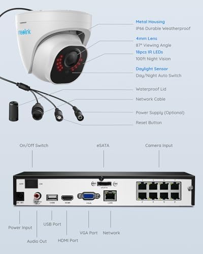 COMPATIBLE WITH VARIOUS Reolink IP CAMERAS: The 4K CCTV security camera system can be expanded up to an 8-camera kit with any Reolink PoE IP cameras o WiFi Camera without any compatibility issue. Supported Reolink 8MP/5MP/4MP IP cameras include: RLC-520A, 510A, 810A, 820A, 823A, 811A, 822A, 812A, TrackMix PoE, Duo PoE, 410W, 510WA, etc.