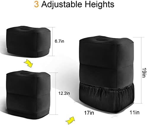 MULTI-FUNCTIONAL INFLATABLE FOOTREST: SAHEYER’s Inflatable travel foot rest pillow has 3 adjustable heights, you can choose suitable height to relax your foot and legs.1-layer can be used as a camping pillow, 2-layer is suitable for cars and train to relax your legs, 3-layer can be used as an auxiliary bed for children in airplanes. AHEYER multi-functional inflatable travel footrest pillow is essentials for relieving fatigue during your journey