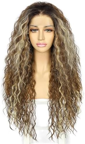 Curly Lace Front Wig: 13×2.5 Lace Front Synthetic Wig, Transparent Glueless Lace on the Top, Soft and Breathable.