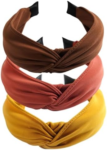scicent Head Bands 3 Pieces Hairbands Women Twist Knotted Vintage Headwraps Hair Accessories Elastic Hair Bands Thick Head Band Party Headbands for Girls (Yellow+Coffee+Tangerine) – 9818