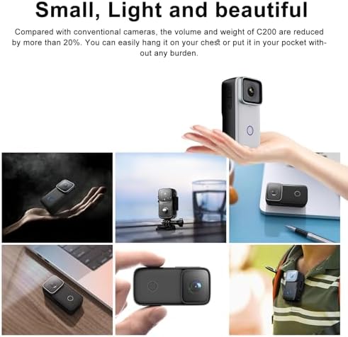 Hands-Free Mini Vlogging Camera: Despite its metal body, the C200 is 25% lighter than most traditional action cameras. So you can easily put it in your pocket or attach it to your collar without it weighing you down. Despite its compact size, this power-saving sports camera has a 1200 mh battery that can easily record up to 150 minutes in HD.