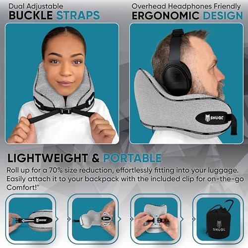 BREATHABLE FABRIC AND WASHABLE – The SNUGL travel neck pillows for airplanes are covered with breathable, super soft and 100% skin-friendly Elastic Cationic Fabric. Compared to other travel pillows that use Velour or Fleece fabrics, our cover prevents your neck from overheating and excessive sweating. The cover is removable and washable to make cleaning a breeze. It’s like taking a new travel pillow for airplane for adults with you on every trip. Makes a great gift for someone going traveling.