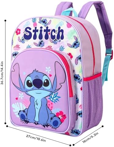 This Disney Stitch Kids Childrens Standard Primary Nursery Backpack School Rucksack Travel Bag Boys Girls with 1 side mesh pocket for your school water bottle and a front zipped pocket as well for extra storage.