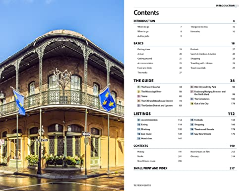The Rough Guide to New Orleans covers: The French Quarter, The Mississippi River, Tremé, The CBD and Warehouse District, The Garden District and Uptown Mid-City and City Park, Faubourg Marigny, Bywater and the Ninth Ward, and The Cemeteries.