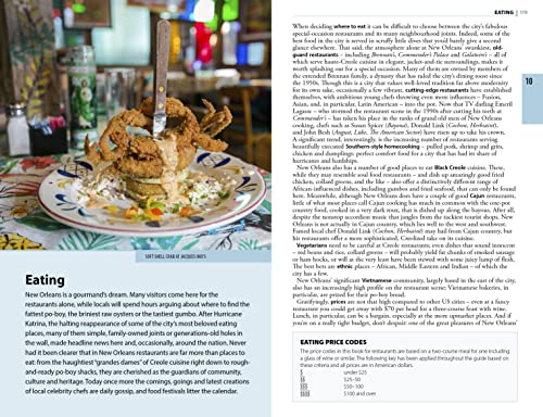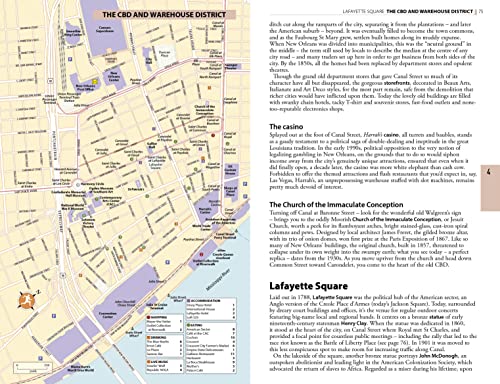 Clear structure within each sightseeing chapter of this New Orleans travel guide includes regional highlights, brief history, detailed sights and places ordered geographically, recommended restaurants, hotels, bars, clubs and major shops or entertainment options.