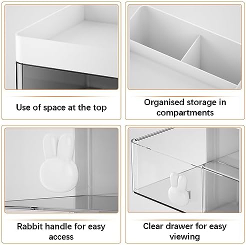 【Careful Details】This storage organizer is designed with a cute rabbit handle, which not only adds some vibrancy to the simple design, but also makes it easier to pull out. The transparent drawer allows you to find what you need quickly. All around are curved corners to prevent injuries.