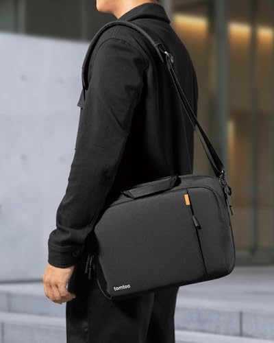This laptop shoulder bag is crafted from 100% sustainable recycled RPET polyester fabric, meeting environmental standards, and signifies another step forward for tomtoc in promoting environmental sustainability.