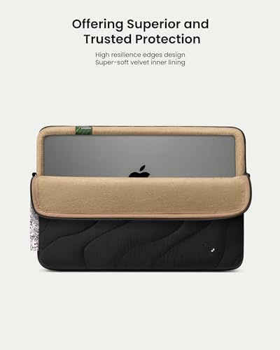 Superior Laptop Protection: Equipped with CornerArmor X4 Technology, this laptop sleeve ensures your MacBook is protected from the toughest situations, durable to combat falls or shocks on your way. The blend of eco-friendly polyester cotton fabric with a super-soft velvet inner lining emphasizes the sleeve’s resilience, offering unparalleled safety for your device with Earth’s tender song.