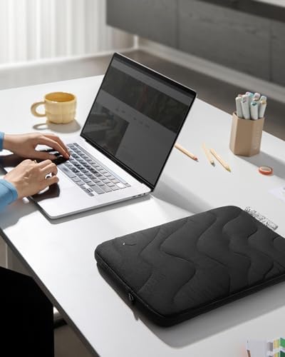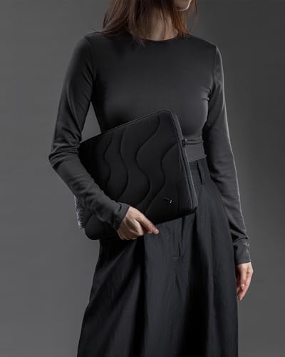 Puffy Tenderness & Durability: Imagine your device enveloped in our quilted design sleeve, crafted with a puff-like softness yet firm in structure. This sleeve, resembling a plush cushion, offers your tech the perfect blend of tenderness and robust protection. It slides smoothly into larger bags, always holding its shape, and provides a snug, secure fit for your device. Experience the unique combination of tenderness and durability.