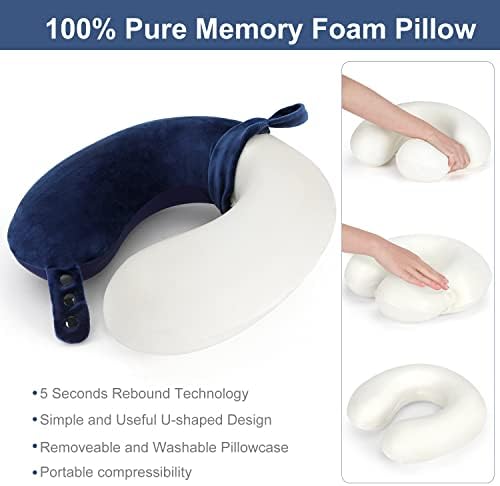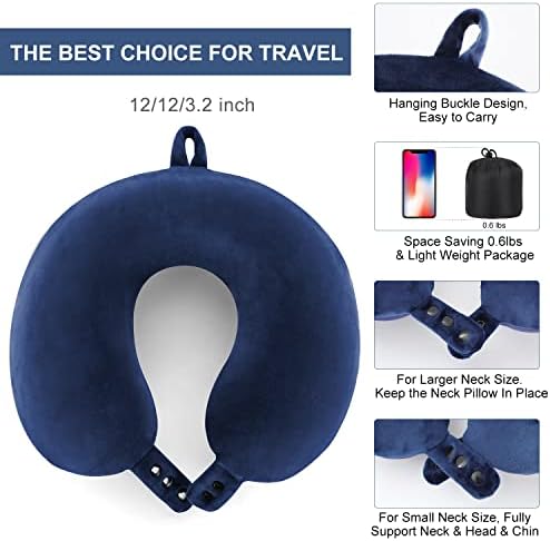 【LIGHTWEIGHT COMPACT BAG AND SNAP-ON LOOP】100% Pure Memory Foam Travel Airplane Pillow can easy to compress in a compact bag. Don’t worry about travel pillow taking up valuable space in your carry-on. Our super easy, heavy duty snap-on loop of the pillow attaches to backpacks, luggage, or just about anything you might carry on.