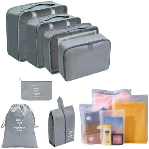 【Wide Application】: With different size, the travel essential bag set can store and classify clothes, dirty laundry, bra, underwear, shoes, socks, cosmetics, towels, toiletries and electronics accessories well, a good companion for going out.