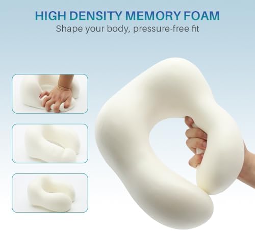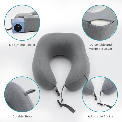 Tailored Neck Support – The travel neck pillow features orthopedic raised contours and grooves on both sides, custom-fitting to your contours. Your neck, head and cheeks can all comfortably rest on the soft yet supportive memory foam cushion