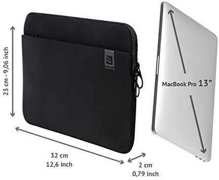 Neoprene case with front pocket for accessories, designed to perfectly wrap your MacBook Air or Pro and Laptop. Inside, the MacBook remains stable thanks to the Anti-Slip System, which consists of an elastic mesh band that keeps the laptop secure and prevents accidental drops when the zip is opened. The 4mm-thick neoprene construction also offers added shock protection. The front pocket offers enough space to store accessories or small items.