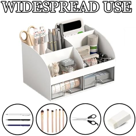 Wide Range of Applications:Desk organisation is available in White, You can sort and store everyday items such as pens,sharpeners, binders, scissors, rulers, glue sticks, folder holders, notes, pins and pencils.for storing your makeup and cosmetic accessories such as lipstick and eyeliner or jewelry, hair accessories, etc.